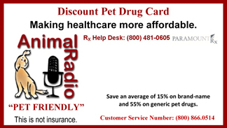 Animal Radio® made a deal with the top pharmacies to save you up to 55%. Or, if you would like us to mail you a free card, send a self-addressed stamped envelope to: Animal Radio Drug Card, 6537 S Dahlia Cir, Centennial, Colorado 80121